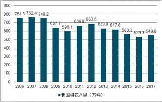 2006-2017年我國棉花產(chǎn)量走勢圖
