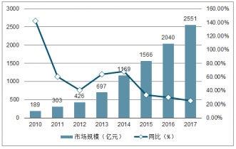 2010-2017年中國(guó)LED照明行業(yè)收入規(guī)模及同比增速