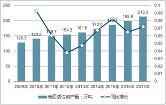 2009-2017年我國表面活性劑產(chǎn)量統(tǒng)計