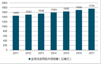 2011年全球洗滌用品市場規(guī)模為1459億美元,2017年全球洗滌劑市場總規(guī)模已達(dá)1756億美元,近年呈逐年增長趨勢。
