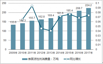 2009-2017年我國表面活性劑消費(fèi)量統(tǒng)計