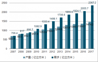 2007-2017年我國(guó)天然氣供需平衡走勢(shì)