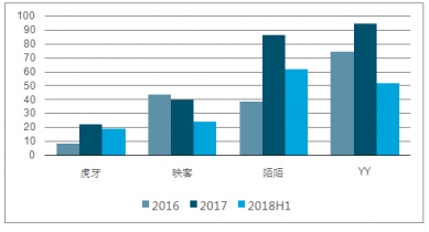 主流直播公司收入變化情況(億元)圖
