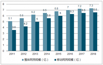 2011-2018年中國整體網(wǎng)民及移動(dòng)網(wǎng)民規(guī)模