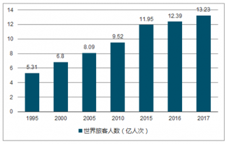 在旅游人數(shù)方面,2017年全球國際游客總數(shù)達(dá)到13.23億人次,比2016年增加約0.84億人次,增長6.8%。全球國際游客人數(shù)已連續(xù)八年保持增長態(tài)勢。