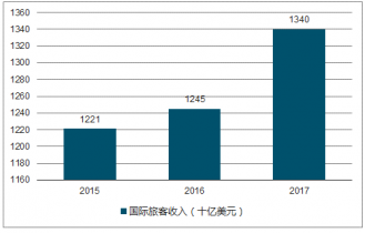 在旅游收入方面,2017年全球旅游總收入達(dá)1.34萬億美元,較上年增長了4.9%。