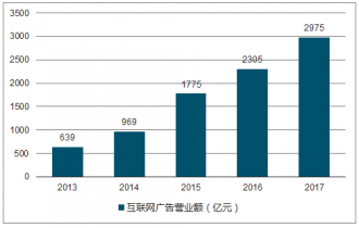 2013-2017年中國(guó)互聯(lián)網(wǎng)廣告營(yíng)業(yè)額走勢(shì)