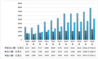 根據(jù)商務(wù)部統(tǒng)計數(shù)據(jù),2018年我國服務(wù)貿(mào)易進(jìn)出口總額為7918.8億美元,其中我國服務(wù)貿(mào)易出口金額為2668.4億美元,進(jìn)口金額為5250.3億美元。