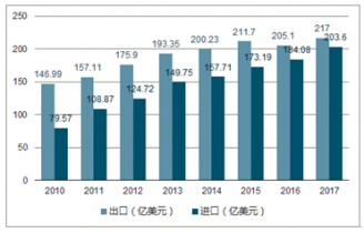 2010-2017年我國醫(yī)療器械進出口金額走勢