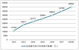 2012-2018年中國在線旅行預(yù)訂市場用戶規(guī)模