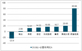 服裝家紡業(yè)子行業(yè)2018Q1-Q3營收增速(%)
