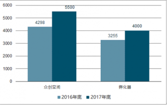 2016-2017年全國眾創空間及孵化器數量變化(家)