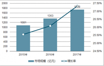 2015-2017年我國智慧社區(qū)行業(yè)市場規(guī)模及增長率