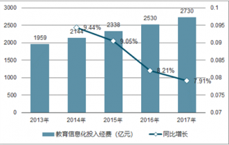 2013-2017年我國教育信息化經費投入情況及同比增速(億元)