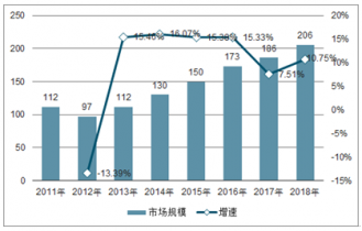 2011年我國新建高速公路智能化系統(tǒng)的市場規(guī)模為112億元左右,到2017年達186億元。2018年新建高速公路智能化系統(tǒng)的市場規(guī)模在206億元左右。