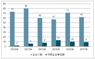 2012-2017年導航、氣象及海洋專用儀器制造行業企業數量統計(家)