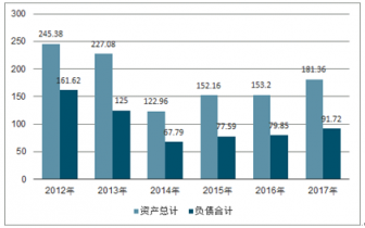 2012-2017年導航、氣象及海洋專用儀器制造行業資產及負債統計(億元)
