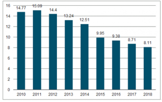 截至2017年底,我國教育培訓(xùn)機構(gòu)的總量為8.71萬所,其中包括職業(yè)技能培訓(xùn)機構(gòu)和各種非學(xué)歷的短期培訓(xùn)機構(gòu),如中小學(xué)課外輔導(dǎo)機構(gòu)等;相比2010年的14.77萬所,我國教育培訓(xùn)機構(gòu)已大幅減少了6.06萬所,預(yù)計2019年將進一步減少至8.11萬所。