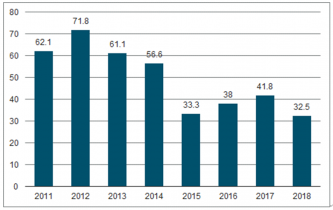 2011-2018年中國水利行業(yè)能力建設(shè)完成投資情況