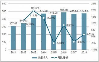 2011-2018年中國焊割設備行業銷售收入及增長