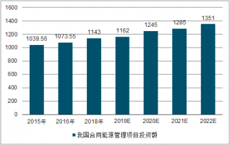 2015年,我國合同能源管理項目投資額為1039.56億元,同比增長8.43%。到了2016年我國合同能源管理項目投資額為1073.55億元,同比增長3.27%。綜合以上因素, 2019年我國合同能源管理項目投資額達到1143億元,未來五年(2018-2022)年均復合增長率約為4.26%,預測到了2022年我國合同能源管理項目投資額將達到1351億元。