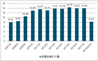 2007-2018年9月我國鎢精礦產量統(tǒng)計情況
