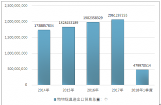 2016年我國動物玩具進出口貿易總量1982358329個 ,2017年進出口貿易總量2061287295個 ;2019年1季度進出口貿易總量479970514個 。