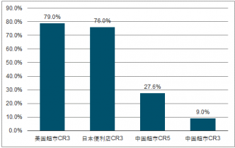 中國超市與美、日國家集中度對(duì)比