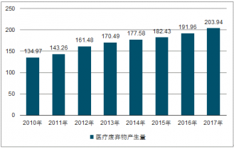 近年來,伴隨著醫(yī)學(xué)技術(shù)進步及人民生活水平、健康狀況的提高,臨床上大量使用一次性醫(yī)療衛(wèi)生用品,醫(yī)療廢棄物的產(chǎn)生量大幅提升。2016年,我國醫(yī)療廢棄物產(chǎn)生量已達到191.96萬噸,同比增長5.22%。