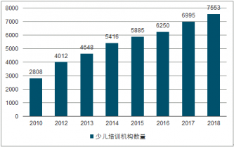 2010-2018年中國少兒培訓(xùn)機構(gòu)數(shù)量增長趨勢