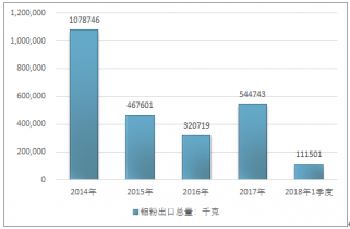 2016年我國鉬粉進出口貿(mào)易總量472362千克 ,2017年進出口貿(mào)易總量665107千克 ;2019年1季度進出口貿(mào)易總量140194千克 。