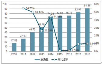 2010-2019年中國(guó)保健酒行業(yè)消費(fèi)量及增長(zhǎng)