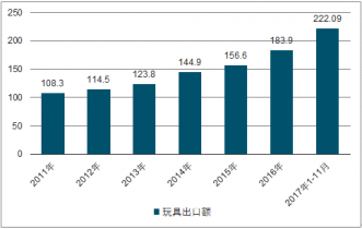 2011-2017年國內(nèi)玩具出口額(億美元)