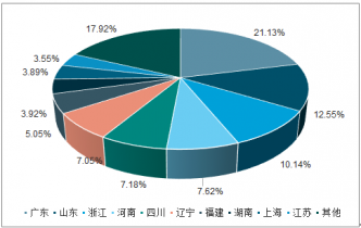 分區域來看,廣東省占全行業銷售產值的21.13%;山東省位居第二,占比為12.55%;浙江省位居第三,占比為10.14%。