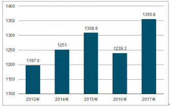 2012-2017年,我國社區(qū)服務人員規(guī)模整體呈上升趨勢,2013年人員規(guī)模為1197.6萬人,2017年職工總數(shù)達到1355.8萬人。