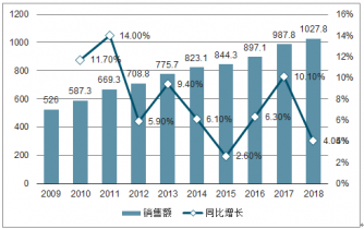 2009-2019年中國膠粘劑銷售額及增長情況