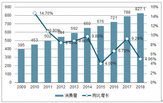 2009-2019年膠粘劑消費(fèi)量及增速