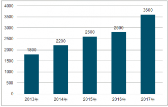 2013-2017年中國(guó)食品電商規(guī)模走勢(shì)圖(億元)