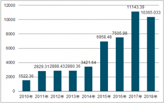 目前,我國科技金融相關政策法規不斷完善,初步建立了多層次的資本市場體系,銀行、擔保和風險投資機構的支持力度不斷加深,創業風險投資市場快速發展。2010年,中國股權投資市場投資金額還僅有1522.36億元;到2018年,股權投資市場投資金額已高達10365.03億元。