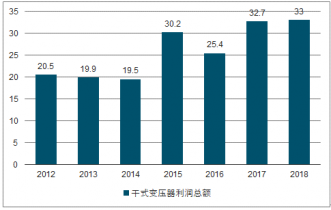 2012-2018年中國干式變壓器利潤總額