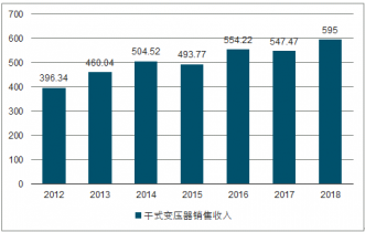 2012-2018年中國干式變壓器銷售收入