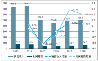 2013-2018年中國(guó)民爆行業(yè)銷售收入及利潤(rùn)總額增長(zhǎng)情況