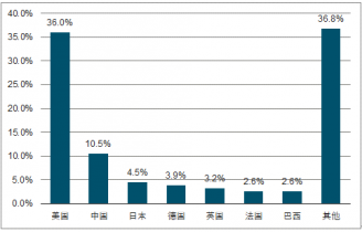 2017年全球運動鞋服銷售規(guī)模分國家占比