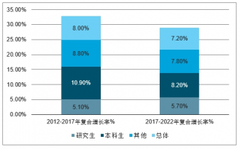 2012-2022年中國出國留學(xué)人數(shù)復(fù)合年均增長率走勢