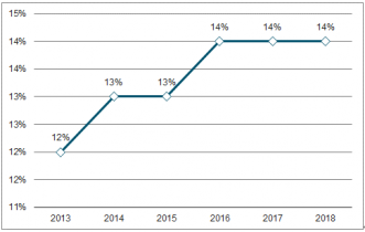 圖表6:2016-2019年中國汽車電子系統(tǒng)市場占全球份額比較