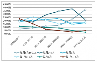 2017年中國不同家庭收入人群網(wǎng)購生鮮食品的頻次頻次