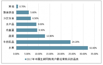 2017年中國生鮮網(wǎng)購用戶最經(jīng)常購買的品類