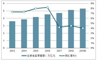 2013-2019年中國生鮮市場交易規(guī)模及同比增長走勢預(yù)測