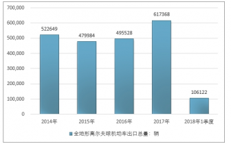 2016年我國全地形高爾夫球機動車出口總量495528輛 ,2017年出口總量617368輛 ;2019年1季度出口總量106122輛 。