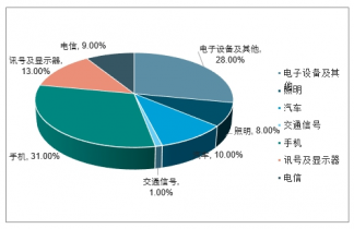 目前,LED產品在手機上應用非常廣泛,是LED產品最重要的應用領域,占市場總需求的31%左右。一般每部手機需用10-20個LED產品,分別使用在手機鍵盤、顯示屏背光源及可照相手機閃光燈上。LED產品在手機市場的滲透率已趨于穩定,未來手機用LED產品的增長空間將受手機銷量的直接影響。